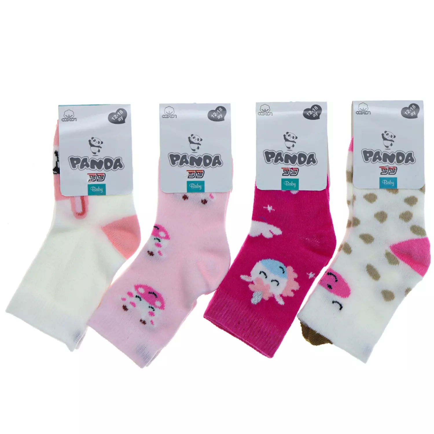 Çöğen Toptan olarak, bebeklerin hassas ciltleri ve minik ayakları için özenle üretilmiş Panda Bebek Çoraplarını 24'lü ekonomik toptan paket avantajıyla sunuyoruz. Sevimli panda tasarımıyla dikkat çeken bu çoraplar, sadece görünüşleriyle değil, aynı zamanda dokularıyla da bebeklerin konforunu sağlar.
