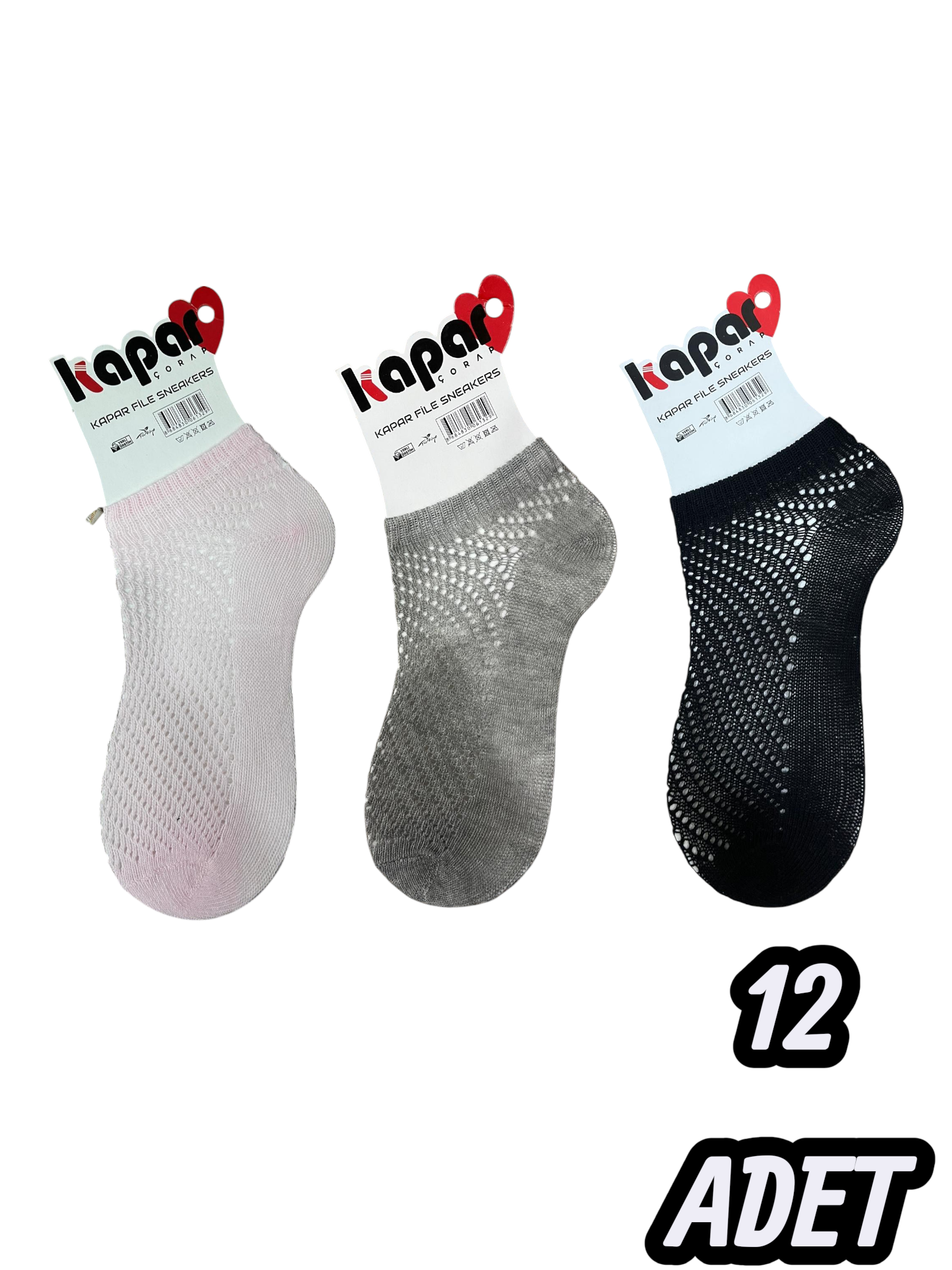 Kapar File Patik 12'li Paket, sıcak havalarda hem konforu hem de şıklığı bir arada arayan müşterilerinizin beğenisini kazanacaktır.
