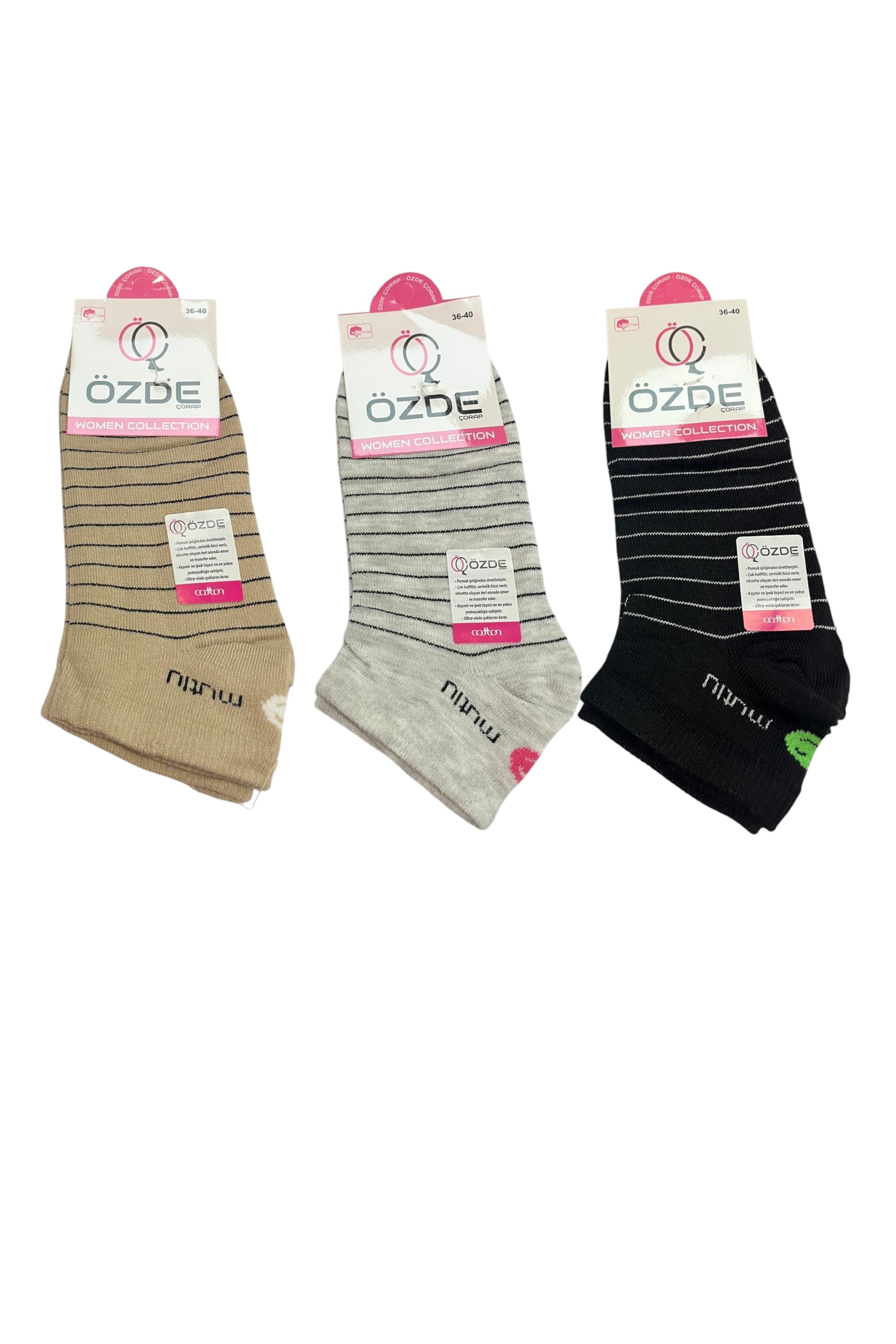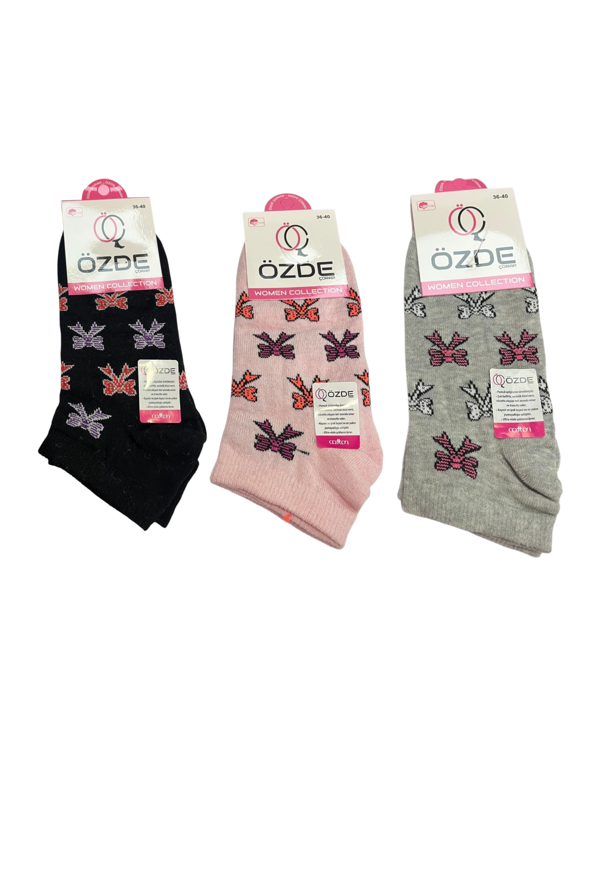 Günlük kullanım için ideal olan Özde Kadın Patik Çorapları, konfor ve dayanıklılığı bir arada sunar. Yüksek oranda pamuklu kumaşı sayesinde ayaklarınızın gün boyu nefes almasını sağlar, terlemeyi önleyerek sağlıklı bir kullanım sunar.