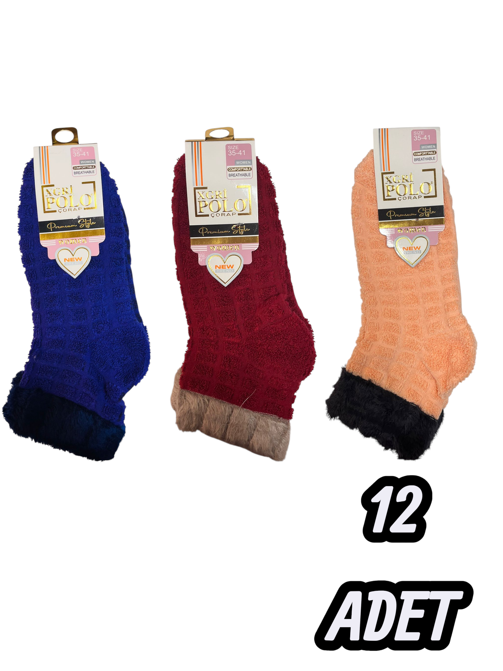 Kadın XGRIPOLO Yumoş Tüylü Patik (12 Adet)