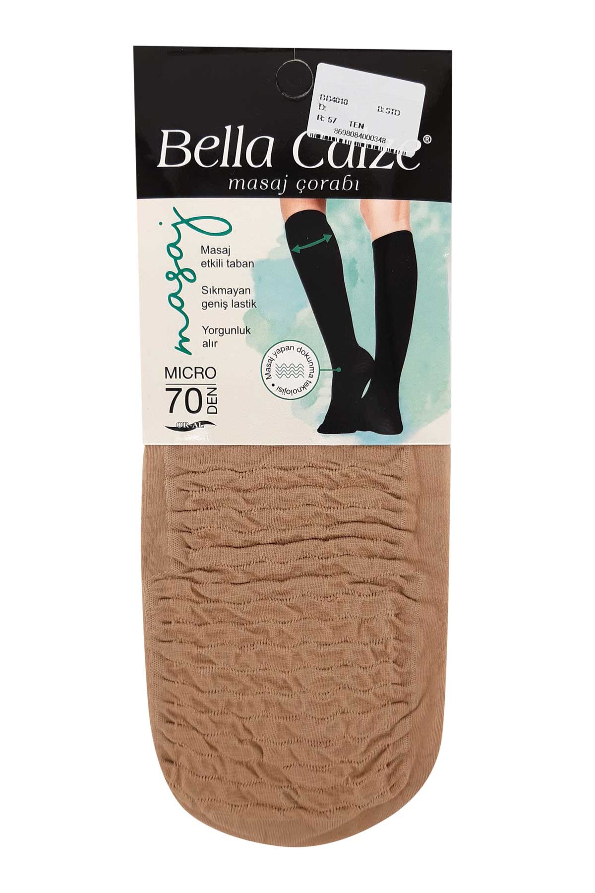 Gün boyu yorgun bacaklara özel bir dokunuş: Bella Calze Masaj 70 Den Dizaltı Çorabı. Bu özel ürün, 70 den kalınlığı sayesinde dayanıklı ve opak bir görünüm sunarken, özel dokusuyla bacaklara mikro masaj etkisi yapar. Kan dolaşımını destekleyerek bacakların daha dinlenmiş ve hafif hissetmesine yardımcı olur.