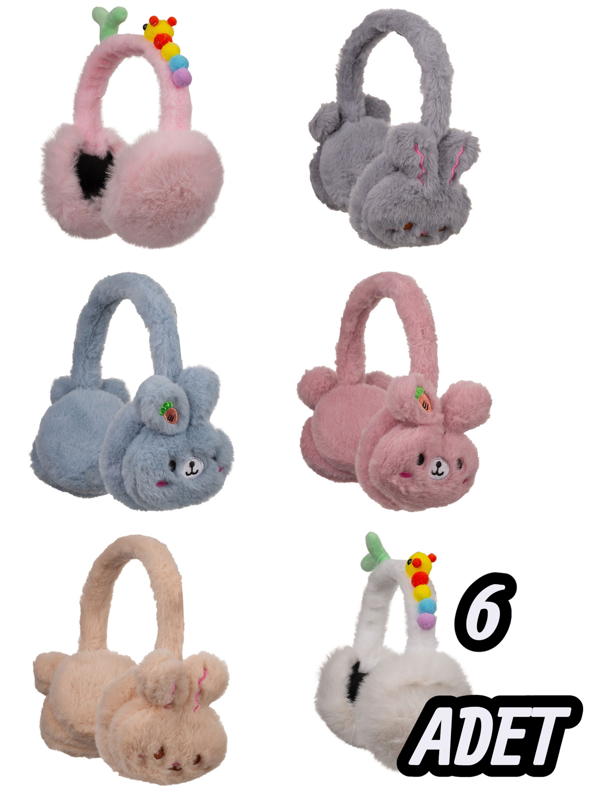 KİTTİ Unisex Çocuk Peluş Kulaklık 6'lı Paket - Soğuk Havada Sevimli Koruma